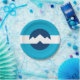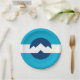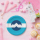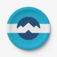 Placa de papel com um design com a bandeira de Ogden, Utah. Uma bandeira azul e branca com picos de montanha no centro