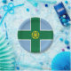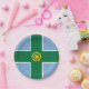 Placa de papel com design com uma bandeira do condado histórico de Derbyshire, na Inglaterra, Excelente-Bretanha; bandeira azul com uma cruz verde e um rosa de ouro Tudor no centro