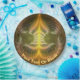 Esta preferencialmente de imagens fractais multicoloridas assemelha-se a algo que vocês podem ver em uma lamaseria no Tibete ou no Butão. O foi aplicado a um objeto gerado por computador que se parece com uma bandeja de latão esmaltada pendurada. Adicione seu próprio texto.