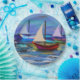 Design de barcos pequenos e alegres em alto mar