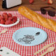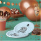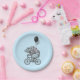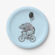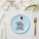 Este design apresenta um urso vestindo uma camisa listrada fornecendo balões em sua bicicleta.