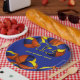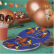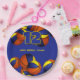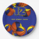 Estas placas de papel de festa do tipo basquete são totalmente personalizáveis e apresentam clusters de basquete nas bordas superior e inferior - cada uma das bolas de basquete tem dois painéis coloridos, um azul e um ouro - personalizam com seu texto personalizado - por katz_d_zynes