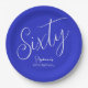 Prato De Papel Bastante Moderno Script Real Azul 60º Aniversário