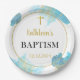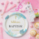 Prato De Papel Batismo Azul Elegante Moderno