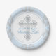 Prato De Papel Batismo do Bebê da Cruz Azul da Elegante Cruz Azul
