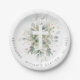 Batismo Bebês/Placas De Papel Para Cristãos. Este design apresenta uma ilustração da folhagem verde e ouro no estilo de aquarela. Na folhagem verde há uma imagem de uma Cruz.