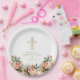 Prato De Papel Batismo Floral Cruzado do Ornamentado Dourado Eleg
