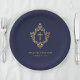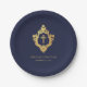 Prato De Papel Batismo Menino Azul Marinho Falso Dourado Brasão R