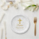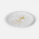 Prato De Papel Batismo personalizado no Damasco Branco e Dourado