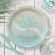 Esta placa de papel nas cores suaves do mar e da areia permite que você adicione facilmente seu próprio nome e texto usando o modelo fornecido. A simples imagem do helm do barco sobre um fundo angustiado, de aquarela, é destacada por um quadro branco estreito e um sotaque de onda em aqua e branco. Procure ID623 para ver a coordenação de elementos à beira-mar e produtos adicionais com este design.