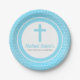 Prato De Papel Bebê Baptismo Primeiro Aniversário Blue Cross Boy
