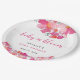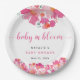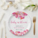 Prato De Papel Bebê com Chá de fraldas Floral Rosa Sanguíneo Aqua