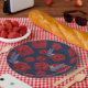 Bicicletas Hawaii Red Flowers em pratos de papel.