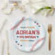 Prontos para uma festa de aniversário desportiva legal? Este design apresenta um fundo branco clássico, pintado à mão, texto azul e vermelho marinho, um beisebol, estrelas, um capacete com ilustrações de taco e bola, "Atingindo o grande", e a tipografia "Swing over". Localizar itens correspondentes no meu compro.