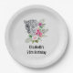 Placas de papel de aniversário com uma bela ilustração com uma cinza, um retrato de leopardo preto e branco. Este adorável animal está cercado por um buquê de flores tropicais. Elegante, exótico e adorável.