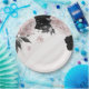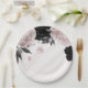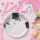 Lindas flores pretas e cor-de-rosa com algumas folhas de cinza em uma placa botânica de fundo de mármore