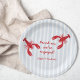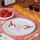Adicione um toque divertido e personalizado à sua festa de noivado ou chá de casal com esses pratos de papel divertidos para cozinhar lagostins! Com a frase “Belisque-nos, estamos noivos” em fonte negrita vermelha estilo caligrafia, esses pratos são perfeitos para uma celebração casual ao estilo sulista.