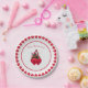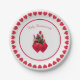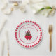 Lindo prato de papel do aniversário de rubi com corações e flores em fundo de cor prata-clara. O texto "Aniversário da Ruby" pode ser personalizado.