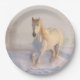 Prato De Papel Belo Cavalo Branco Correndo na Neve
