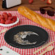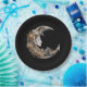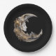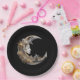Chapas de papel com uma bela ilustração. Um rosto feminino na lua rodeado de flores.