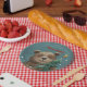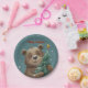 Prato De Papel Belo Urso Bonito Abraçando Árvore de Natal