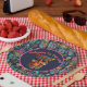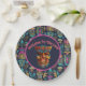 Uma Placa de Papel de Festa Luau Máscara Tiki Brilhante em Azul e Rosa para um Luau Havaiano