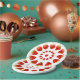 Green stemmed red strawberries, outer and inner circles, at 30 degree pivot movements, 12 in each circle, and one in the center.