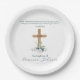 Prato De Papel Bíblia de Batismo Azul e Branco da Cruz de Madeira