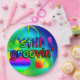 Um design gráfico de um arco-íris ainda está limpando o sinal do artista/designer Charmaine Paulson em uma placa de festa.