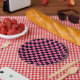 Prato De Papel Black and pink checkerboard pattern