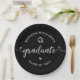 Prato De Papel Black Graduation White Modern Script Hearts Cap