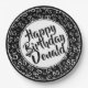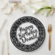 This over-the-hill design has a black and white random number pattern with a white milestone number 85 repeated in varied sizes and angles. There is a white circle in the center for your text and black and white rings around the rim.