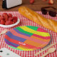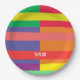 Prato De Papel Bloqueio de cor Stripe Monograma Nome Arco-íris