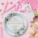 Perfect for a Quinceañera or 15th birthday party, these plates can be personalized with a custom name, making your celebration feel truly one of a kind. The soft blue palette pairs effortlessly with romantic floral themes, gold accents, and greenery-inspired décor, creating a cohesive and photo-ready tablescape.