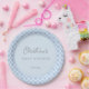 Add a personal touch to your baby shower with these custom baby blue hearts pattern paper plates.