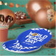 Celebrar o Dia Internacional da Paz (também conhecido como Dia Mundial da Paz) no dia 21 de setembro com estas placas de papel, que mostram um sinal de paz laranja brilhante em pé para a letra O no mundo, cercada por folhas de louros num fundo azul calmante. Design © W.H. Sim. Mais informações em zazzle.com/expressionsoccasions
