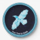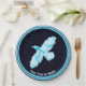 Uma imagem de linha simples, brilhante, azul e branca de um Raven (Corvus corax) em uma imagem de fundo estrelada. Adicione seu próprio texto.