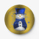 Prato De Papel Blue Snowman no Dourado Natal