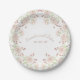 Beautiful light blush pink watercolor roses and berries floral wedding paper plate design is great for a garden or spring wedding.