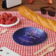Celebrar debaixo das estrelas com esta estrelada placa noturna. Água roxa e azul criam o céu noturno com uma nebulosa brilhante no topo. Versátil para qualquer comemoração galáxica, incluindo um Sweet 16, Quinceañera, festa de aniversário, comemoração de cinzas, bailes de formatura escolares ou regresso a casa, ou um evento corporativo noturno. Disponível com produtos correspondentes.