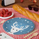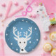 Crenas de renas bonitas, azuis, pratos de Natal de inverno. Pratos para as crianças na festa de Natal.