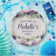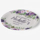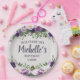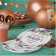 Bonito pénicas roxas e lavandas/folhas florais e verdes com cor d'água com placas de papel personalizadas de "Bem-vindas", de festa de aniversário clara, de mulheres. Personalizado com o nome do convidado de honra. Entre em contato comigo para obter ajuda com a personalização ou para solicitar a correspondência ou a coordenação de produtos Zazzle para o seu partido.