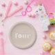 Adicione um toque pessoal à sua pequena decoração de aniversário com nossas pratos de papel de quarta aniversário da Daisy. Esta design boho apresenta uma tipografia moderna e um encantador sotaque margarida, criando um olhar doce e na moda. Personalize o prato com o nome do seu filho para um toque personalizado. Disponível em três cores neutras - bege, rosa poeirento e cinza azul - para corresponder perfeitamente ao tema do seu partido.