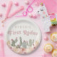 Sale-se por diversão com nossas adoráveis e femininas placas de festa de aniversário 'primeiro rodeio'! Este design apresenta cactos de aquarela com lindas flores boêmicas florescentes e uma combinação impressionante de tipografia. Alimente todos os cowboys e cowboys famosos com os seus pratos de festas no tema!