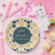 Prato De Papel Boho Personalizado Sol Lua Estrelas Azul Amarelo
