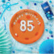 Fechamento de uma bola de picles laranja para um aniversário de 85 anos. Todo o texto pode ser alterado ou excluído.