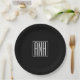 Prato De Papel Bold Modern 3 Iniciais Monograma | Branco A Preto