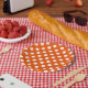 Bolinhas brancas em laranja