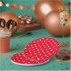 Padrão retroativo de bolinhas brancas em uma placa vermelha de papel, ideal para a mesa da sua festa.
