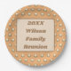 Você está procurando uma maneira única de personalizar sua refeição de reagrupamento familiar ou piquenique? Estas placas de papel oferecem uma maneira atraente e barata de personalizar a próxima reunião da sua família. O padrão nas placas apresenta um padrão elegante de bolinhas dourada contra um fundo de pêssego escuro. O centro apresenta um retângulo esboçado castanho com o meio de pêssego pálido, fornecendo o fundo para seu anúncio, nome da família e ano.